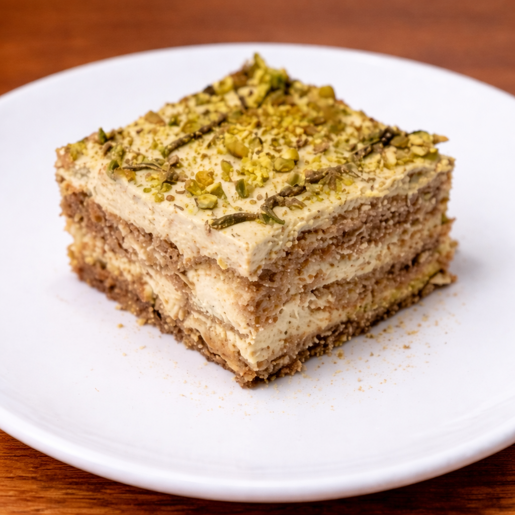 Gently fold the whipped cream into the pistachio mascarpone mixture. Don’t overmix — keep it light and airy.